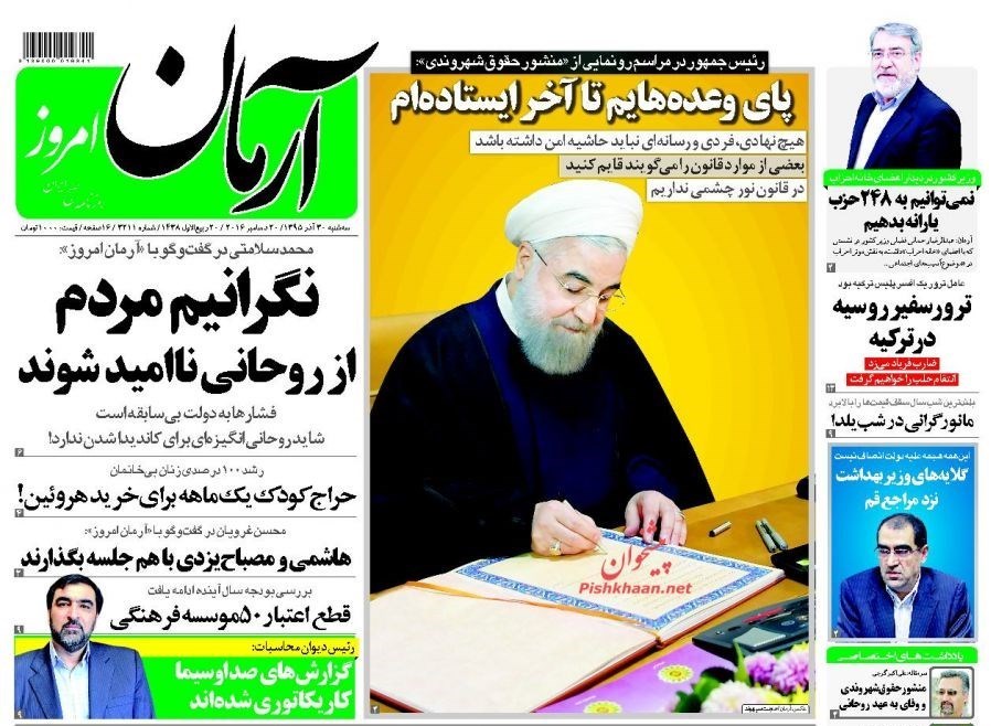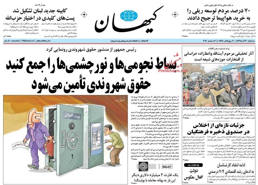 تصاویر صفحه اول روزنامه‌های سه‌شنبه 30 آذر