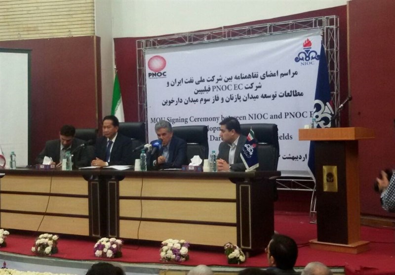 به گزارش خبرنگار اقتصادی خبرگزاری تسنیم، شرکت ملی نفت ایران و شرکت نفت PNOC EC فیلیپین در حاشیه بیست و دومین نمایشگاه ین المللی نفت، گاز، پالایش و پتروشیمی ایران تفاهم نامه همکاری امضا کردند. این تفاهم نامه با موضوع انجام مطالعات توسعه میدان پازنان و فاز سوم میدان دارخوین است.