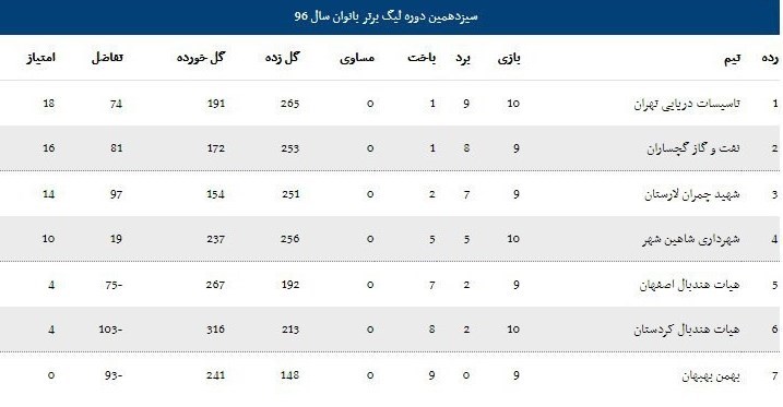 نتایج هفته یازدهم لیگ برتر هندبال بانوان: