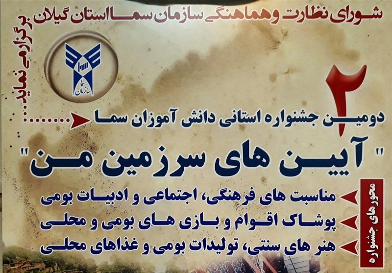به گزارش تسنیم، نخستین دوره جشنواره "آیینهای سرزمین من" سال گذشته و با موضوعاتی مانند مناسبتهای بومی، آئینهای فرهنگی اجتماعی، پوشاک اقوام، بازیهای بومی، صنایع دستی و غذاهای محلی در رشت برگزار شد.