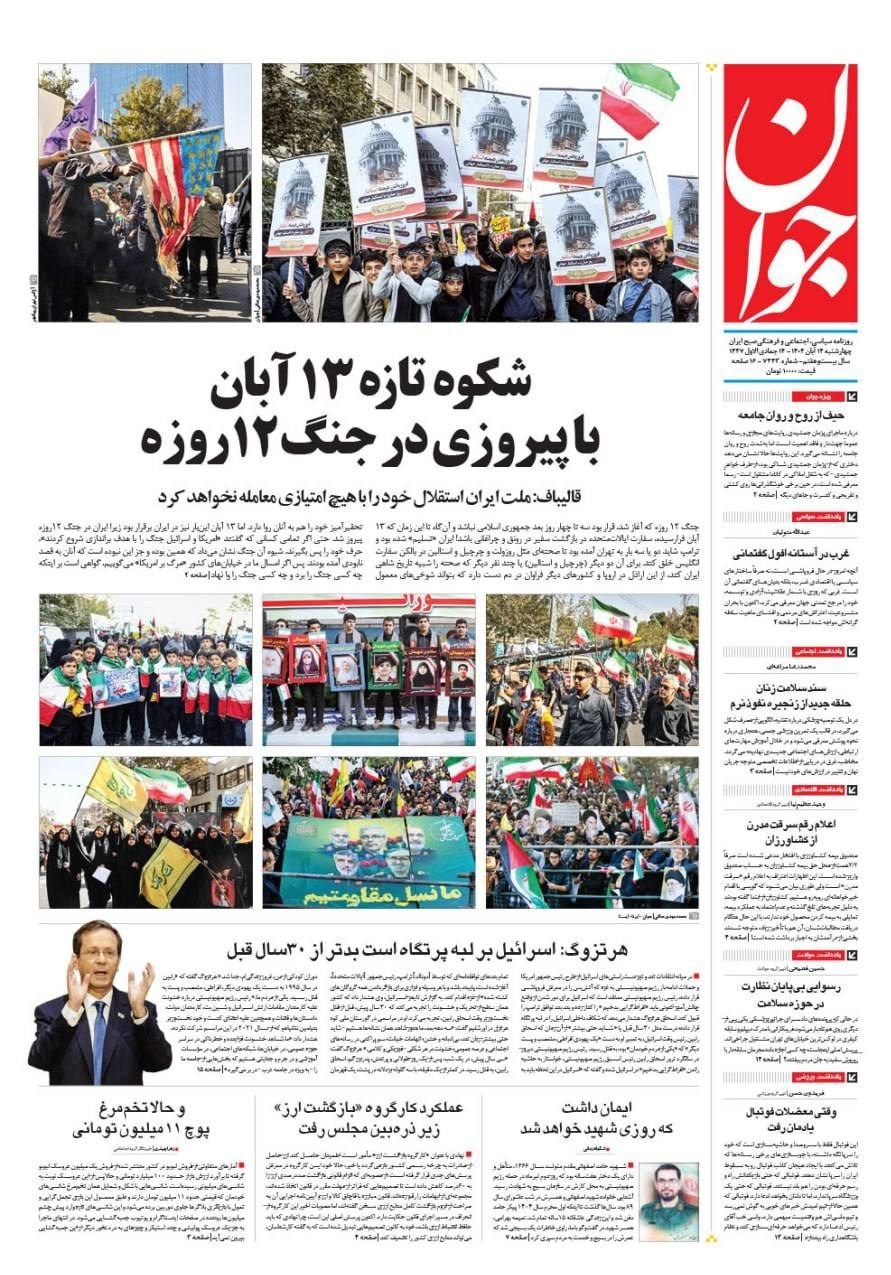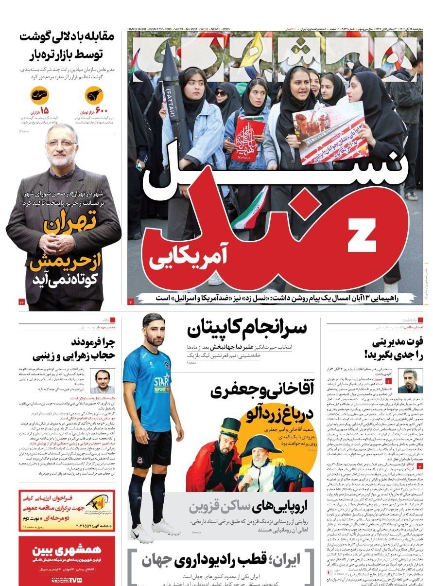تصاویر منتخب صفحات نخست روزنامه‌های چهارشنبه14 آبان منتشر شد.