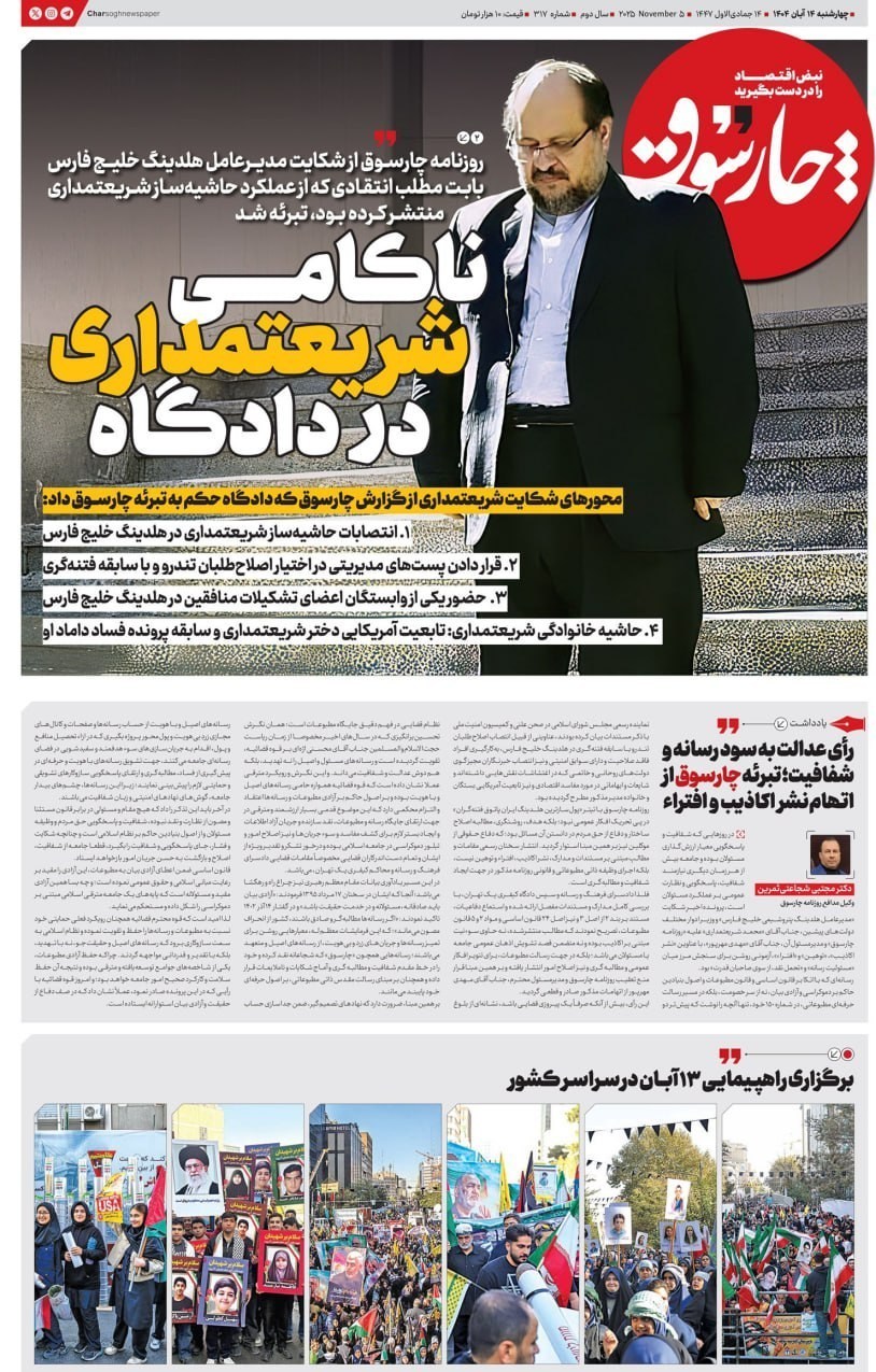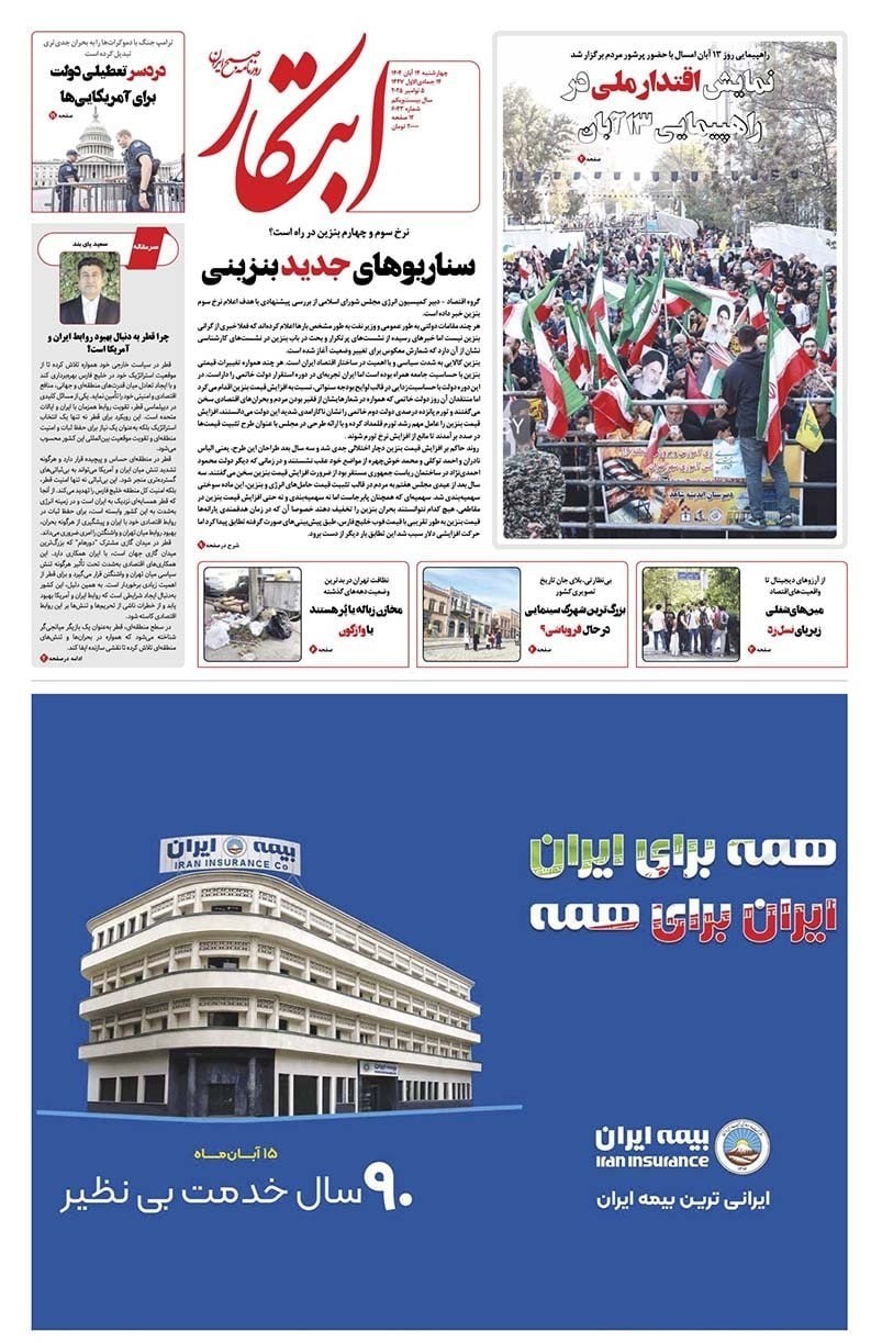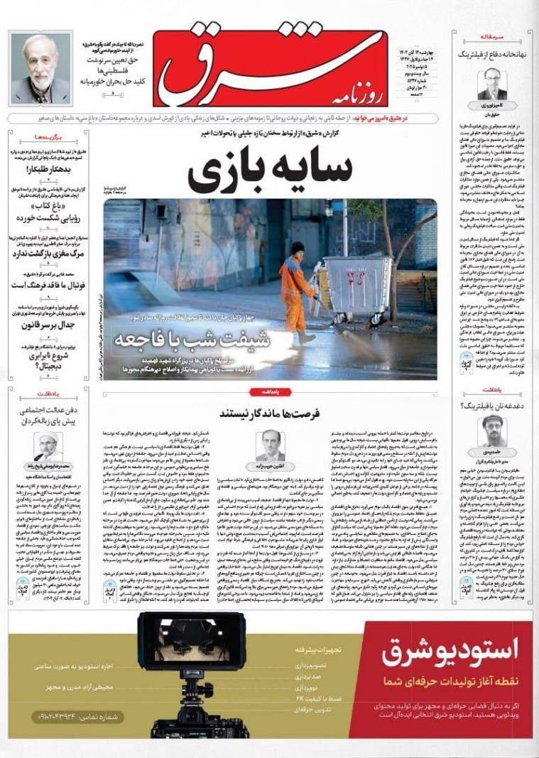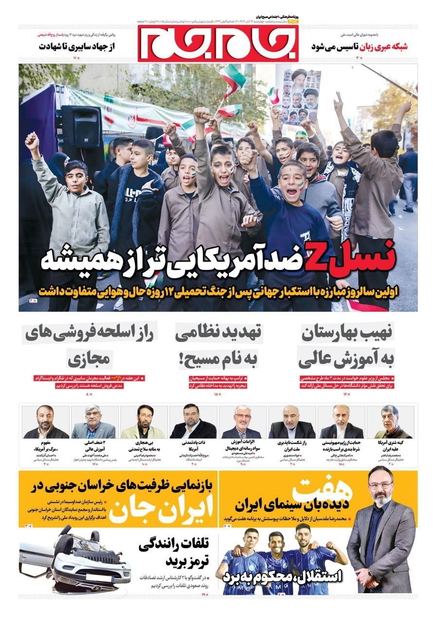 صفحه اول مطبوعات چهارشنبه14آبان/سلبریتیسم به دیوار سخت خورد؟
